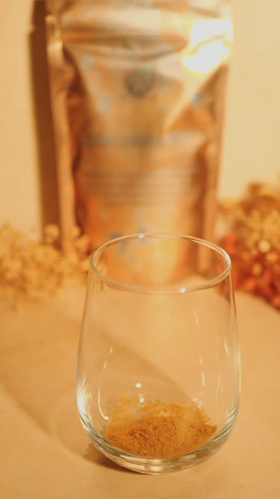 *Harina de coco, *cúrcuma 32%, *canela, *jengibre, *pimienta negra en polvo 100% natural y ecológico.